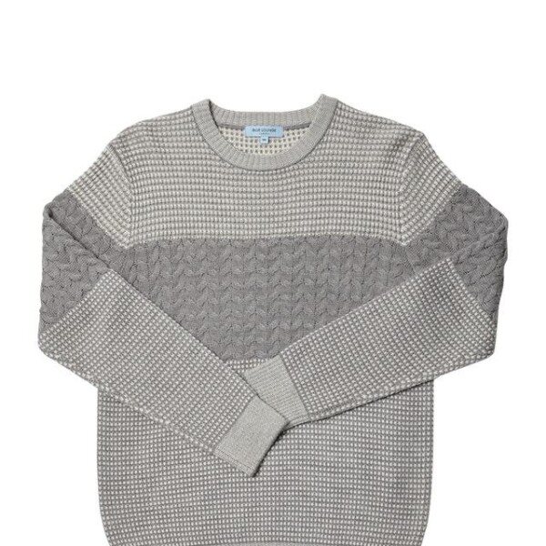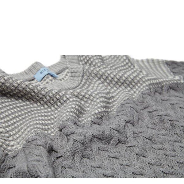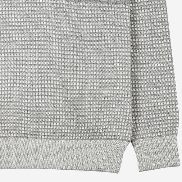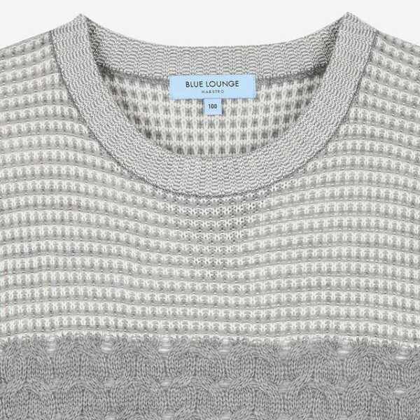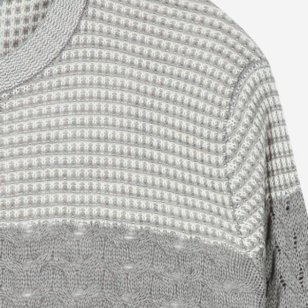 컬러 배색과 중앙의 물결 짜임으로 포인트를 준 트렌디한 외관을 보여주는 니트입니다