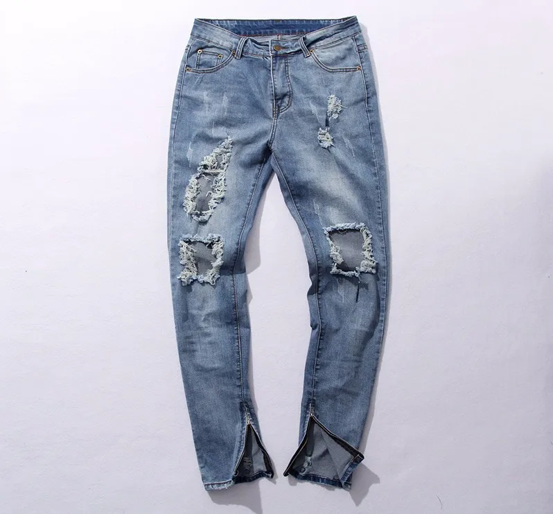 kpop skinny ripped korean Hip Hop Fashion Pants cool Mens urban Clothing jumpsuit Men's jeans kanye west slp fear of god 1820349