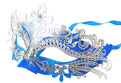 -. Title : Coxeer Laser Cut Metal Lady Masquerade Halloween Mardi Gras Party Mask (Silver & Blue)