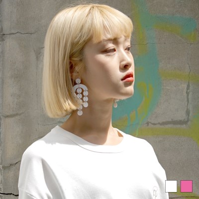 플라스틱 재질의 원형 팬던트가주렁주렁 매달린드롭이어링을 소개합니다!