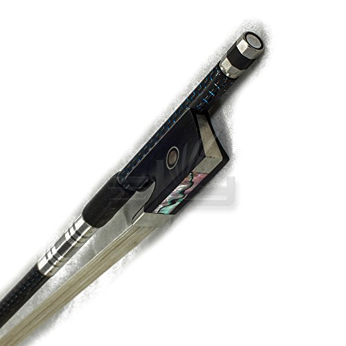 -. Title : SKY 4/4 Violin Bow Satin Carbon Fiber Round Stick Blue Silver Inlaid Patterned Mongolian Horsehair Silver Wrap Blue with Double Eye Fully-Line Abalone