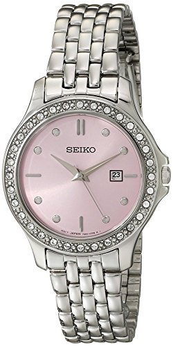 -. Title : Seiko Pink Mother of Pearl Dial Swarovski Crystal Stainless Steel Ladies Watch SXDF89