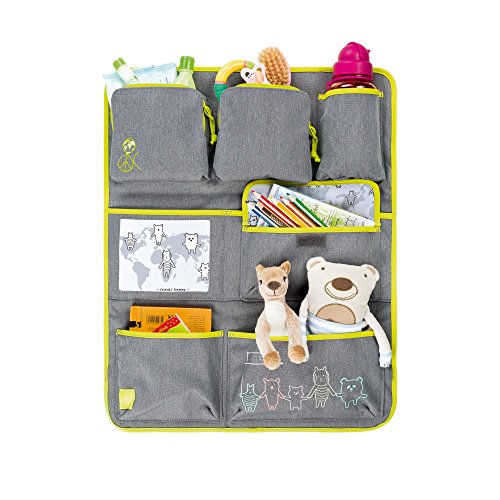 The car organizer from the LASSIG About Friends collection is practical and sustainable at the same time. It can be easily attached to the backside of a car seat so that children have everything within easy reach while on the road. Whether it's a toy, plush animal, snacks or beverages, there's enough space for everything in one of the several zipper or Velcro compartments to keep everyone happy. Available in three colors, this convenient travel accessory therefore caters perfectly to the needs of children and assures a smooth and quiet trip for parents at the same time. The material used in the sustainable accessory is partially made of recycled polyester. The Reprove certificate guarantees that the materials are made from used, recycled PET bottles. This process is resource-saving as well as very energy-saving.Feature