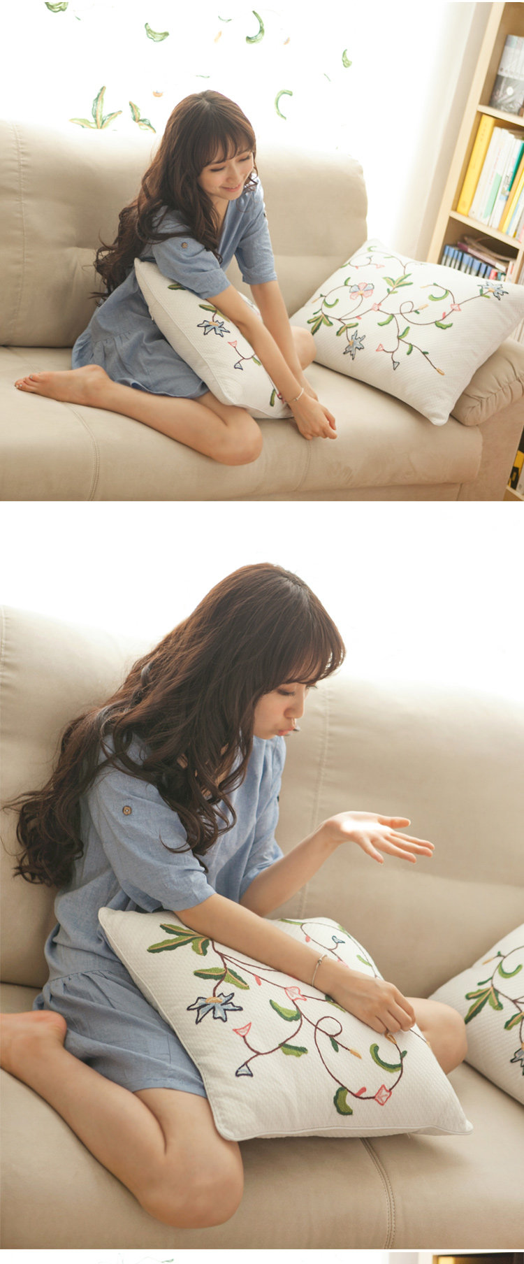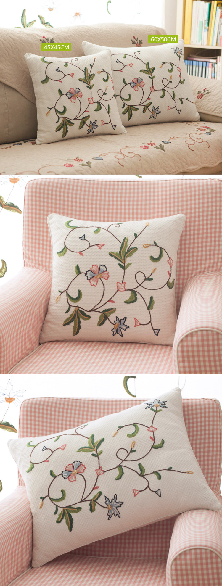 常青藤&抱枕套 45cm*45cm 牛奶白、米黄色 90%棉+10%聚酯纤维/89%棉+5%涤+6%麻 手工毛线刺绣