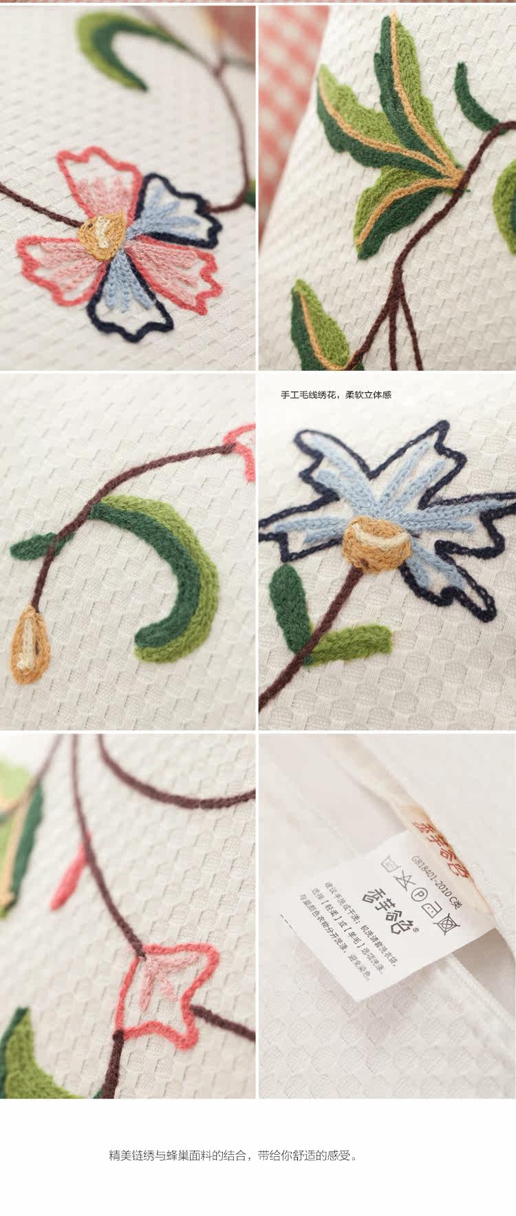 鲁绣商品均为单面刺绣,棉麻面料有5%左右的缩水。