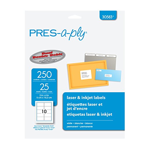 Pres-a-ply Inkjet Address Labels, 2 x 4 Inches, White, Box of 250 (30583)