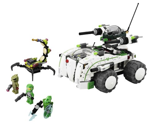 -. Feature : Includes 3 minifigures: Chuck Stonebreaker, robot sidekick and alien boid, all with weapons. / Features laboratory, computer, flick missiles, split function and big cannons. / Weapons include alien sonic gun, 2 blasters and an energy blade gun. / Mech features opening cockpit, flick missiles, big cannons, poseable arms, legs and torso. / Other Vehicles include alien scorpion and split-function Vermin Vaporizer's 2 detachable vehicles: mech and battle by.