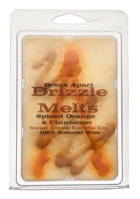 Studio : Swan Creek Candle Publisher : Swan Creek Candle Binding : Kitchen Product Description Swan Creek Candle Soy Drizzle Melt 4.75 Oz. - Spiced Orange Cinnamon are reminiscent of the wonderfully delicious layered candy that we all remember from years past. Just place them in a melter and enjoy the many fragrances. Drizzle Melts are sold in break-apart packaging with six cubes per package. 0