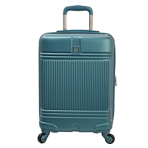 Studio : Travelers Club Luggage Publisher : Travelers Club Luggage Product Description Transport your belongings comfortably and safely with this rolling suitcase. This carry-on features 360-degree spinner wheels, cushioned top and side carry handles, and a push-button telescoping handle for easy mobility over a variety of surfaces. The hard exterior protects the suitcase contents from bumps and scratches, and the polyester-lined interior comes with adjustable compression straps to keep your belongings in place.Hardsided carry-on suitcase constructed with flexible ABS that protects contents from bumps and scratches while retaining its original shapeComes with 360-degree spinner wheels and a telescoping handle for easy mobilityGel-cushioned side and top handles allow you to comfortably carry the suitcase Interior lined with heavy duty polyester Interior comes with adjustable compression straps, shoe pockets, zip-around garment divider, and self-repairing coil zippers Comes in black, teal, silver, and purpleExpands up to 25 percent of its original capacity for extra storageComes with a limited 5-year manufacturer warrantyWeighs 6.2 poundsMeasures 20 inches high x 14.5 inches wide x 9.5 inches deep 0