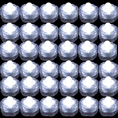 TDLTEK Waterproof Submersible Led Lights Tea Lights For Wedding , Party, Decoration (36 Pieces White)