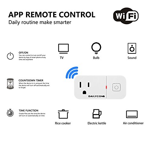 - Smart plugs that works with Alexa/like Echo/Echo Dot/Echo Tap/Echo Show and Google Home Assistant, The voice only supports switches, and the app can support timing and Count down.