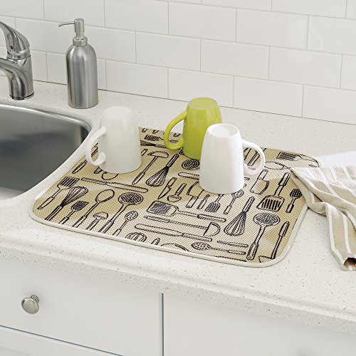 InterDesign iDry Microfiber Dish Drying Mat, 18-Inch by 16-Inch, Wheat/Ivory