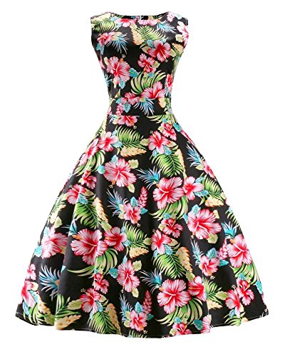 -. Title : LATUD Women's Sleeveless Vintage Rockabilly Swing Hawaiian Floral Print Dress