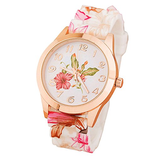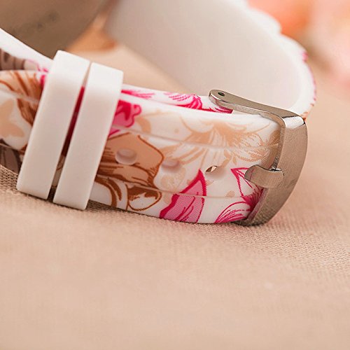 -. Title : BestP.R.Iceam Women Silicone P.R.Inted Flower Causal Quartz Wrist Watches Pink