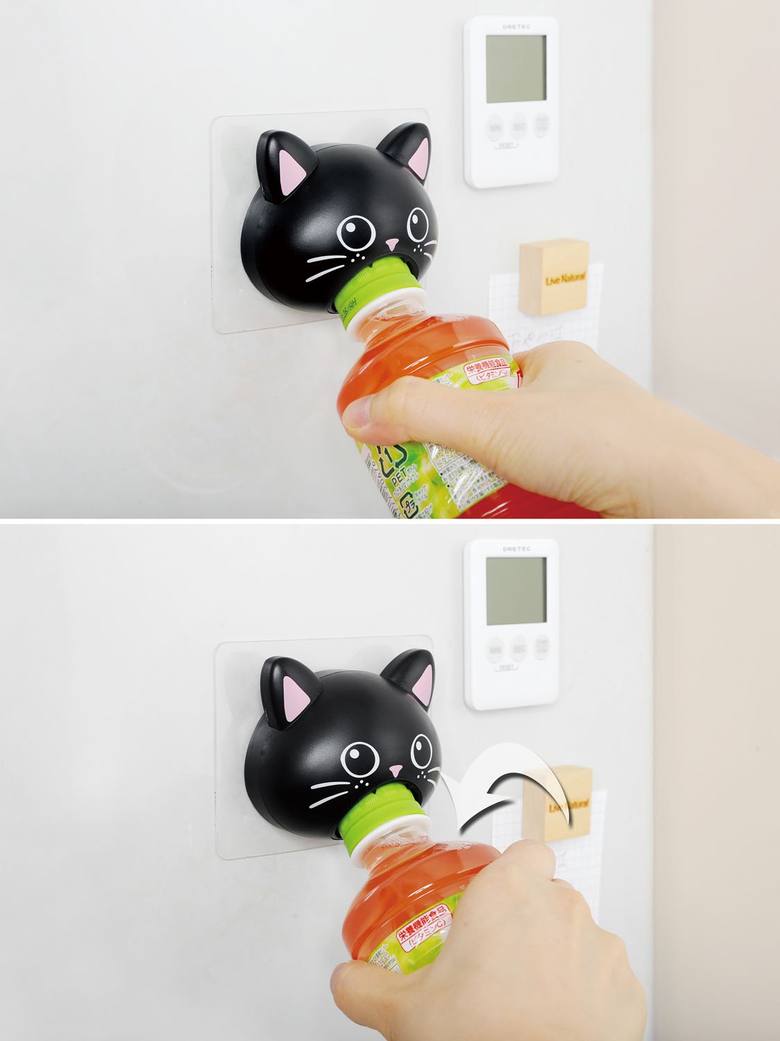 A cute cat design opener that can be opened with one hand of a plastic bottle