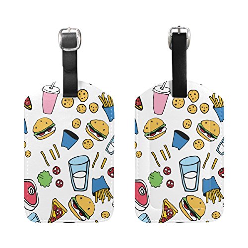 (My Little Nest)/Accessories/Luggage, Bags Travel/DIRECT FROM USA/Travel Luggage Tag Cute Fast Food Design White PU Leather Baggage Suitcase Tag Name Address ID ...