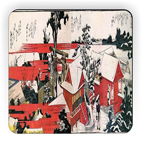 Rikki Knight Katsushika Hokusai Art Red Houses Design Square Fridge Magnet