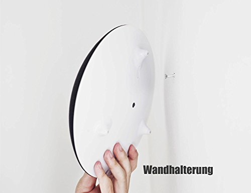 Einfache Montage an der Wand anhand des integrierten Wandhalters; Haken oder Schraube genugen, keine separate Halterung notig