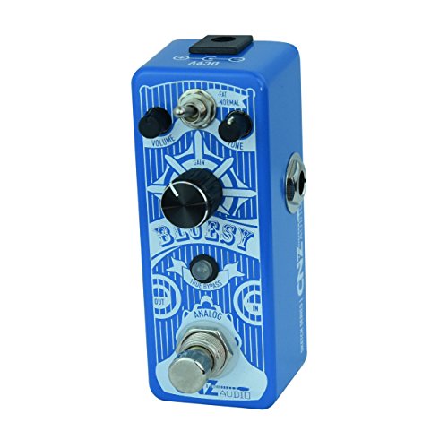 Look Feel The Bluesy Overdrive Guitar Effects Pedal is part of the Vintage Pedal Series from CNZ Audio. It is a smooth and slick lapis blue with a vintage themed white design. While it has a solid build, its mini size allows it to be lightweight, easy to travel with, and leaves plenty of room on your pedalboard. The bottom of the pedal has a thick rubber pad to keep it still on any surface. .Amazing Tone This fantastic pedal gives endless options for an incredible blues tone. With a classic tone and plenty of adjustments, you can bring the perfect amount of overdrive to your music and enhance any many styles of play. For Advanced Players Beginners Alike The CNZ Audio Bluesy Overdrive Guitar Effects Pedal is great for beginner and advanced alike. Advanced guitarists can fine tune the knobs to find that exact tone to inspire your riffs and ignite your music on stage or at home. Beginners can tweak and tune your settings to discover a new feel for their music. Inspire Your Music with CNZ Audio!Standard 9VDC (- center, outside) power supply required, but sold separately* 0 |