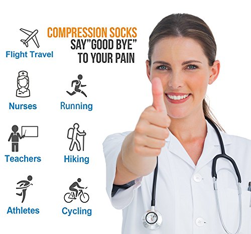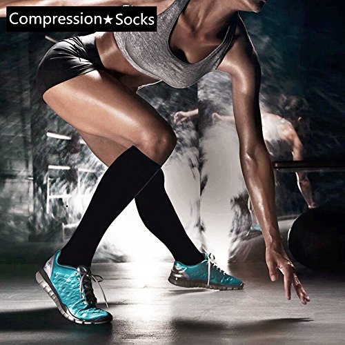 -. Feature : COMPRESSION SOCKS-At times, Compression socks are viewed as medicinal products. We intend allay this myth by combining fashion, technology and science to bring you the triple comfort without having to hide it at 1/7th the P.R.Ice of other product.The pack of 7 is perfect for a whole week without daily wash. it is ideal for those who sit for long period during travel or at work, provide mild squeezing of warmness and enhance blood circulation in your legs. / BEATING OUT THE COMPETITION -our knee high compression socks' material are upgraded with nylon percentage from 40% to 85%, Delivers 360-degree stretch for greater flexibility and durability.breathable high performance fabric keeps an optimal temperature. Bacteria and moisture for maximum level of comfort. No other offering on the market provides compression sock with such competitive P.R.Ice with same quality,We are confident that you will choose it! / PROMOTE BLOOD FLOW AND CIRCULATION - Provide mild squeezing for warmness and enhance blood moving through your legs. Remove stress and stimulate every cell, relieves symp of spider and varicose veins and excess fluid retention.Help relieve pain & discomfort related to plantar fasciitis, Provides true graduated compression to support your legs, reduce fatigue, soreness, cramping and prevent injuries at the same time. / GIFT IDEA: If you are strling with a gift idea to a loved one or a casual friend, this is will reduce your anxiety without even you wearing them J. Great gift choice for joggers, athletes, workout fanatics, office workers, ok..can we just say whoever use their leg extensively. / 100% MONEY BACK GUANRANTEE: Finest product and service guaranteed!!!. Your satisfaction and good health is our top most P.R.Iority. So shop with confidence.
