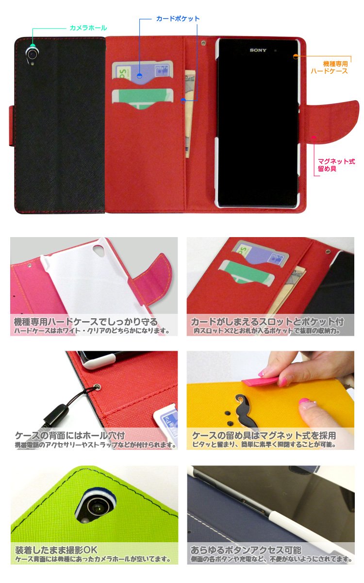 · The inner case provided inside is firmly fixed with a poly hard case dedicated to each model, and it protects the smartphone from impacts, scratches, dust, etc.