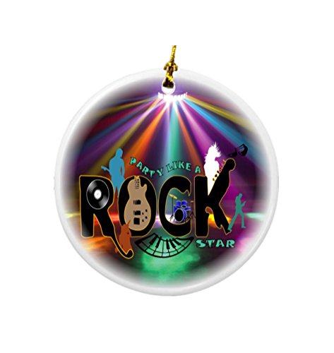 Rikki Knight Party Like a Rock Star Design Round Porcelain Two-Sided Christmas Ornaments
