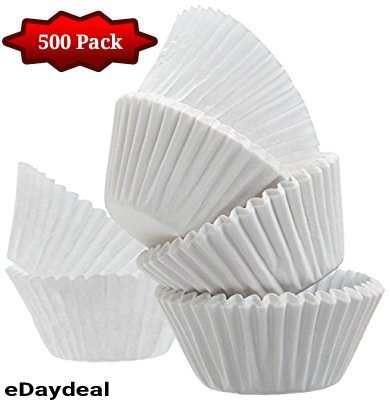 eDaydeal Best Quality Standard Size Cupcake and Muffin Paper - Baking Cups - White cupcake and Muffin Liners For weddings, birthdays, baby showers and More (500)