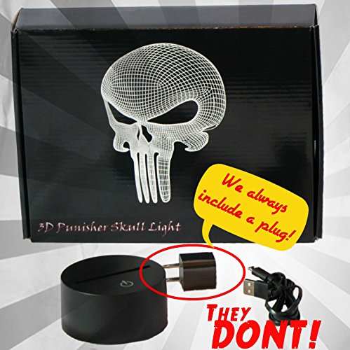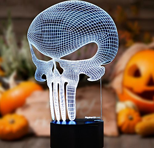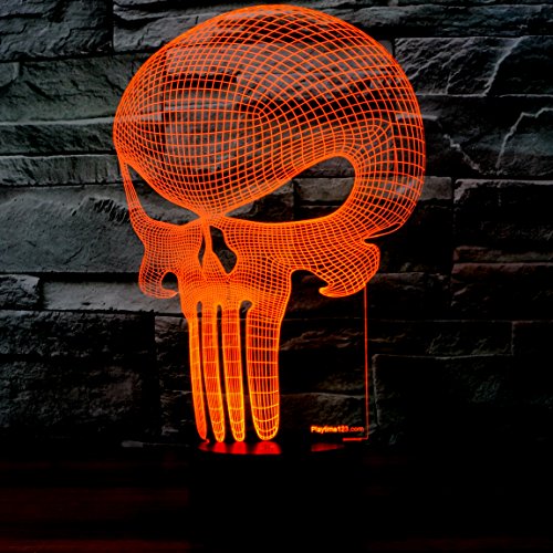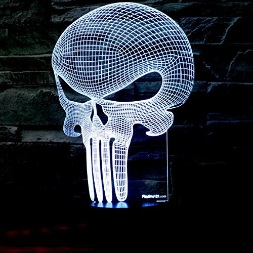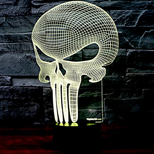 3D Punisher Skull Lighting by Playtime 123 is a Great Nightlight with a Soft Glow for Kids. These Lights Make Beautiful Gifts and Amazing Desk Lamps for Dad. Start enjoying your own 3d Light Today!