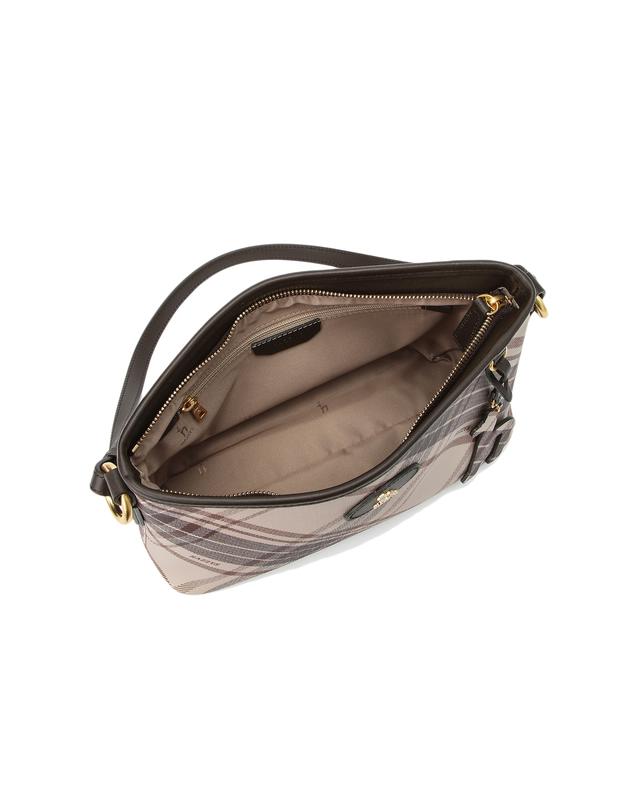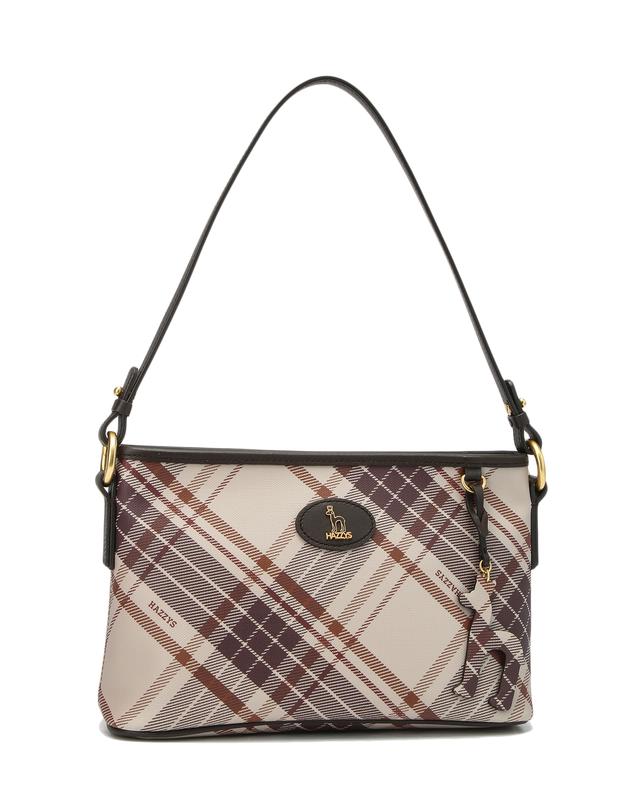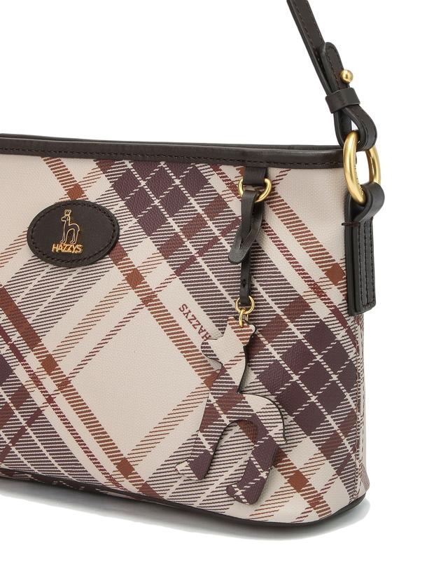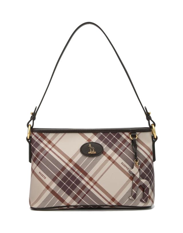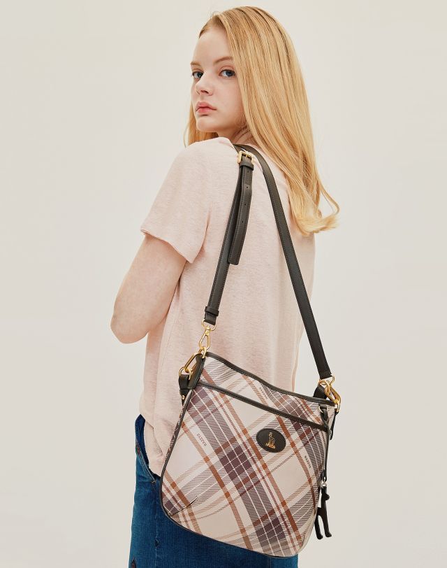 뉴트럴 컬러의 체크 패턴 PVC 소재는 클래식한 느낌을 주면서도 내구성이 강합니다.