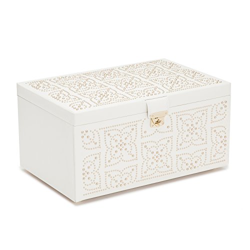 -. Binding : Kitchen -. Brand : WOLF -. Department : womens -. Feature : Dimensions: 15.25L x 10W x 7.75H in. / Leather construction / Select from available colors / Includes 4 ring holders, 30 storage compartments, and 2 travel cases / Lined in fabric -. IsAutographed : 0 -. Label : Wolf Designs Inc -. Manufacturer : Wolf Designs Inc -. MPN : 308202 -. NumberOfItems : 1 -. PackageQuantity : 1 -. PartNumber : 308202 -. ProductGroup : Home -. ProductTypeName : HOME -. Publisher : Wolf Designs Inc -. Studio : Wolf Designs Inc -. Title : WOLF Marrakesh Large Jewelry Box - 15.25L x 7.75H in.
