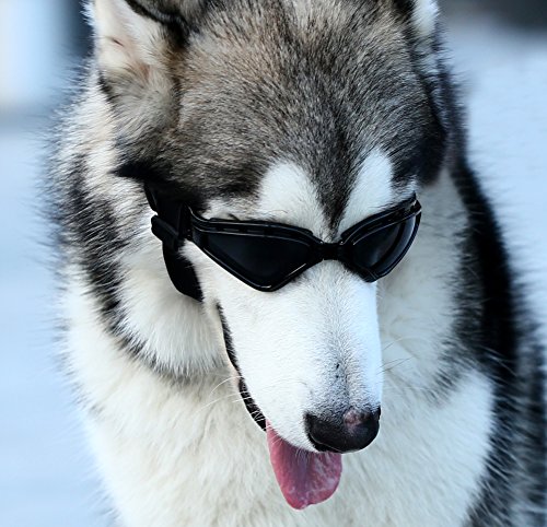-. Feature : Your pet will get a lot of attention when wearing this doggles / The dog goggle is made with elastic straps that can be easily adjusted over the chin and head of your dog / You can easily tell that it has the longest strap measurement especially when it is completely stretched, which makes it more advantageous when adjusting the glasses over your dog¡¯s head. / Designed specifically for dogs in medium and large sizes, like Golden Retrievers, Goldie Shepherds, Huskies and Molly / Protects dog's eyes from UV and wind, enjoy sunshine, The lenses are made with polycarbonate that makes it shatterproof