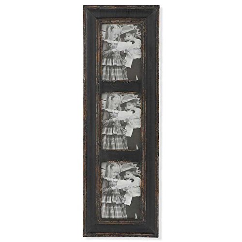 K&K Interiors 13084C 3 Opening Weathered Wood Vertical Picture Frame, Black