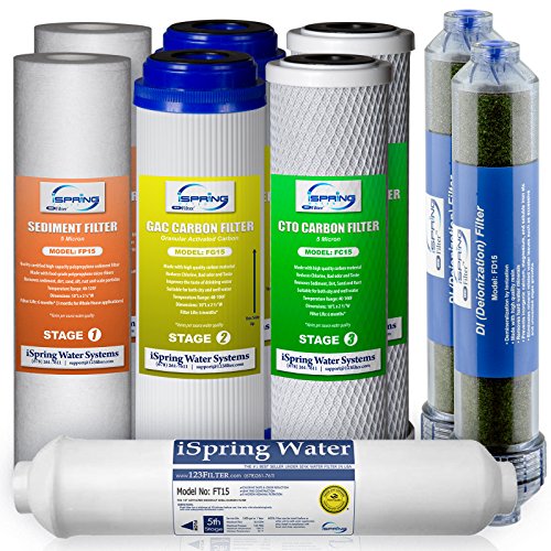 iSpring F9D 1-Year Replacement Filter Set for DI RO Water Filter, Fits iSpring RCC7D RCW7D RCC7D2 (9pcs 2SED 2GAC 2CTO 1T33 2Di, no membrane)