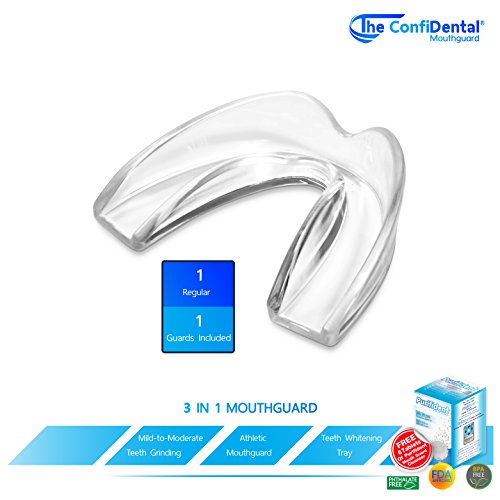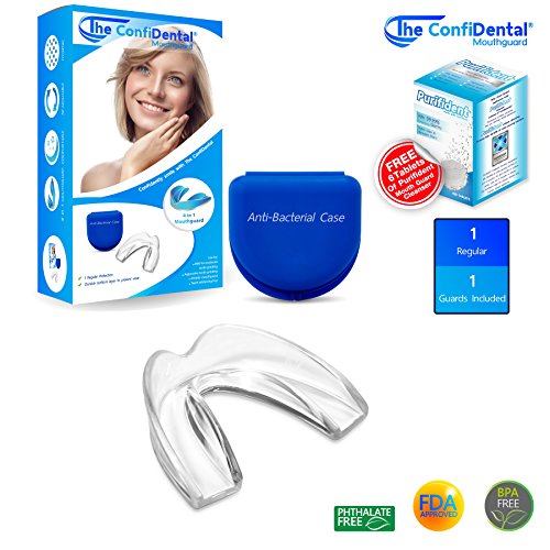-. Feature : Unrivaled Design - The ConfiDental Dental Guards features a unique design that includes a Frenulum notch to prevent irritation and a durable bottom layer to prevent wear. / Comfortable to Use - Made of a moldable material, the ConfiDental Dental Guards custom fits to accommodate any mouth size. Includes easy to follow instructions with a step by step video on how to use the product. / Regular Protection - Includes a total of one Dental Guards that offer Regular Protection. One pieces feature 3mm thickness for everyday protection. / Easy to Clean and Reusable - Made with BPA free and Phthalates free premium grade material, The ConfiDental Dental Guards are easy to clean and can be reused. The package comes with free six cleansing tablets from Purifident for extra freshness and cleanliness. / 3 in 1 Multi-Purpose Use - The ConfiDental Dental Guards is ideal for mild to moderate teeth grinding, as well as aggressive teeth grinding. It is also perfect for use as an athletic dental guard and teeth whitening tray. 100% Satisfaction Guarantee. If you are not completely satisfied with your purchase, simply let us know!