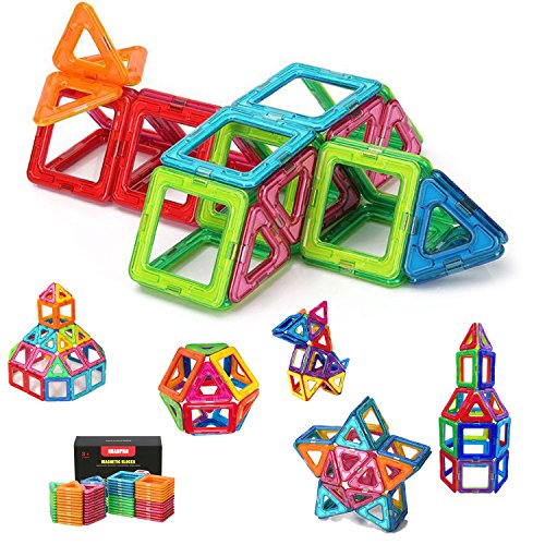 -. Feature : ★full of fun: our 76pcs magnet blocks set which comes in rich gameplay that appeal to boys and girls of all ages, including 50*triangle, 26*square, can be assembled into many patterns, such as: train, airplane, cat, house, round ball, five-pointed star and more. (our 76pcs blocks are all pure magnets, no plastic letter cards or digital cards to make up the numbers. ). / ★excellent workmanship: the building blocks all shell use high quality improted pc material, smooth edge,the all magnet is made of n35 ndfeb material, magnetism is very strong, it attaches each individual piece to the next without falling apart unless pulled apart. / ★friendly and safe: the stem toys all pieces have been through ultrasonic process for better tightness, perfectly prevent breaking apart, safe for child to build with these blocks. Compatible with other magnetic building blocks of similar size, such as magformers and picasso, etc. / ★develop skills: let these magnetic tiles keep your kiddos away from electronics, these magnetic building toys can help them develop their imagination and creativity while play based learning! You will be surP.R.Ised by the different way your little ones explore with them! / ★customer guarantee: full 30-day money back guarantee - purchase without worries! If you're unsatisfied with magnetic toys for any reason, we'll immediately refund your purchase P.R.Ice.