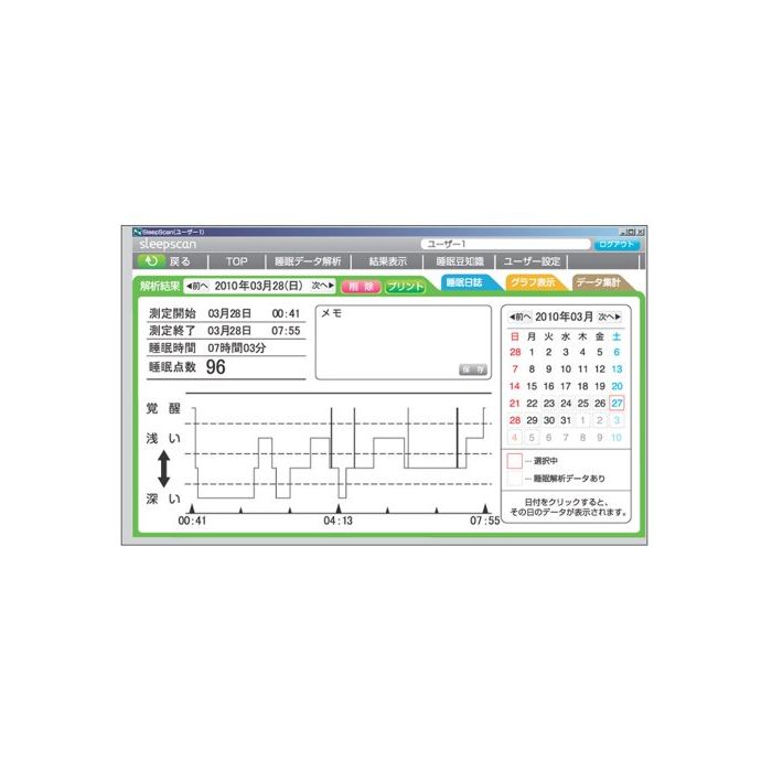 수면의 상태나 그 경향을 파악하고, 나날의 생활 습관이나 컨디션을 대조하는 것에 건강관리에 도움이 되어 주십시요