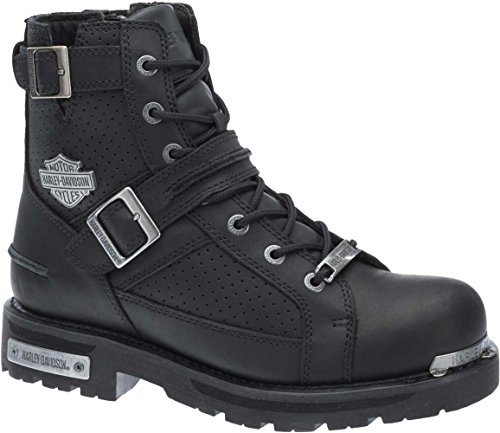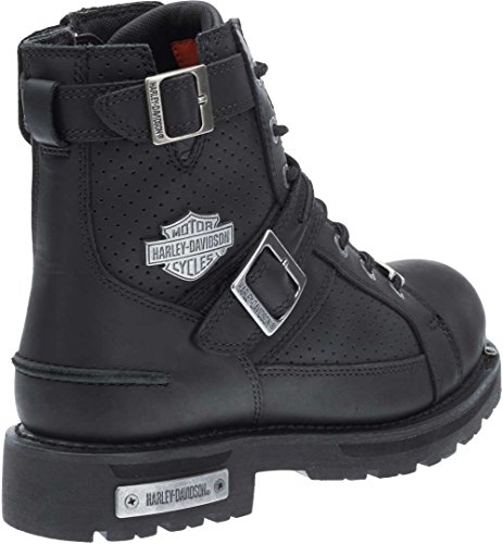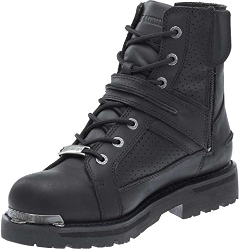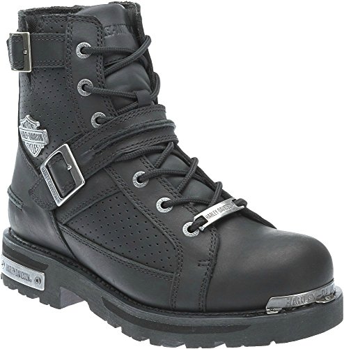 Studio : Wolverine Publisher : Wolverine Product Description Harley-Davidson® Men's Edgewood Riding Appropriate* Performance Motorcycle Boots, D96127. The design team at Harley-Davidson® digs deep for this full featured performance motorcycle boot. Starting with a smooth round toe, metal badging embellishes this no-nonsense boot: on the toe and the outside heel, on the bottom lace, the logo eyelets, a snugging cross-strap with logo buckle, a Bar Shield® badge on the outside facing shaft, and another snugging strap and buckle across the cuff's stretch panel. And, that is just for starters. Robust enhancements put this boot into a category all on its own. The list is long, starting with breathable full-grain leather uppers with perforated panels that help keep your feet cool. A soft, padded logo tongue ensures hours of comfort. YKK® locking inside zippers with a Velcro® closure make putting on and taking off these boots easy. The boots have a comfortable full-length mesh lining. The street-side rubber outsoles, which are rated "BEST" for oil and abrasion resistance, are livened up with orange tread elements and an orange Harley-Davidson® Bar Shield® logo insert in the instep. The boot's sole, insole and upper are bound using resoleable Goodyear® Welt construction processes, the most labor intensive and durable construction method available. Shaft height: 6.5", Heel height: 1.5". Manufacturer Part Number: D96127. *Riding Appropriate-Welt construction, abrasion and oil-resistant, resoleable footwear ideal for riding motorcycles. 0