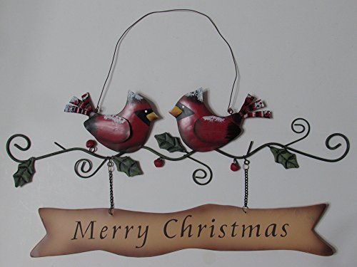 Holiday Essentials 23" Merry Christmas Door Hanger with Red Cardinals & Jingle Bells