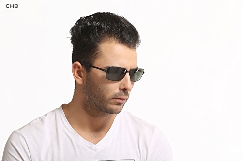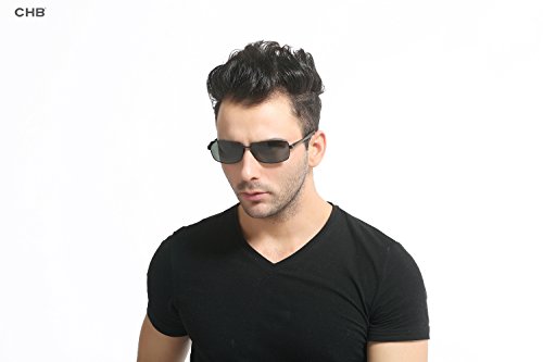 Style:CHB Men's Polarized HD high-definition mirrored lens metal frame street fashion Aviator Sunglasses for Driving Hiking Touring