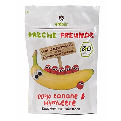 100% Banane und Himbeere aus biologischem Anbau! Leckere Fruchtchips ohne Zuckerzusatz für einen Snack ohne schlechtes Gewissen. Die Frechen Freunde bestehen gefriergetrocknetem Obst oder Gemüse, das so zu lecker-knackigen Fruchtchips wird. Das tolle daran: Kein Zuckerzusatz und keine Sulfate weit und breit! Frittiert wird selbstverständlich auch nicht. Nur was auf der Packung steht, ist auch drin!Feature
