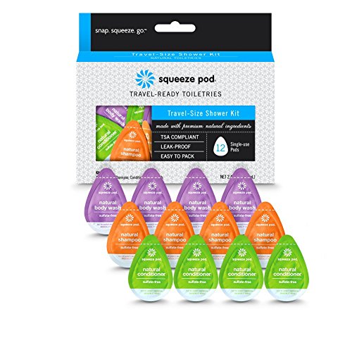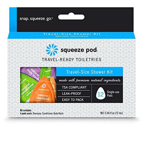 Studio : Garrity Innovation, Inc. Publisher : Garrity Innovation, Inc. Binding : Misc. Product Description Squeeze Pod Travel-Size Shower Kit provides travelers with 4 travel size single use pods of natural travel shampoo, natural travel conditioner, and natural travel body wash. Each of these natural toiletries has a light and refreshing vanilla-lavender scent. Travel Size Shower Kit has all the shower toiletries you need for a 3 day business trip or some summer rest and relaxation while camping, overnight hiking or boating. Squeeze Pod formulations have no phosphates, making them safe for the environment. Squeeze Pod toiletries are perfect for travelers and active people who squeeze the most out of life. All Squeeze Pod toiletries are TSA Approved and easy to pack or tuck in a pocket, backpack, carry-on or gym bag. All Squeeze Pod products are manufactured in the USA using premium natural ingredients, vegan and PETA certified cruelty-free. 0