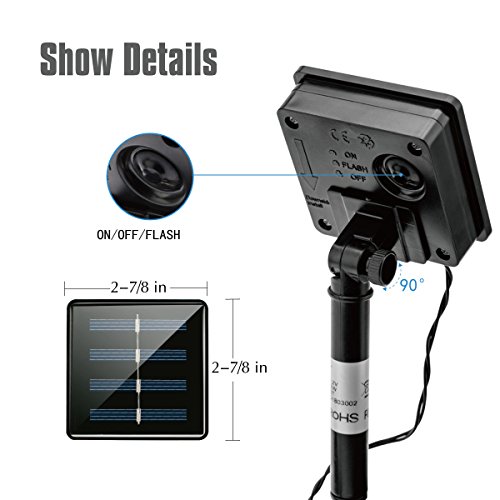 -. Feature : Easy to install:our solar string lights do not need any cables in installation,just plug it into the ground. / Energy efficiency:with solar powered,this solar wall light does not need any electricity device or cost and users do not have to take good care of it. / Safe and environmentally friendly:no danger of electric shock hazard. / Long lifetime:high efficiency light source has been used with high light efficacy,colorful and durable.