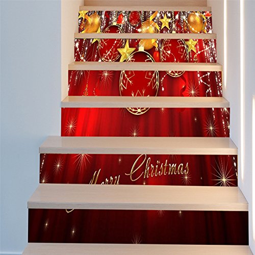 Creative Decorative 3D Christmas Self-adhesive Stair Riser Decal - Stair Stickers Decals Wallpaper for Walls Kitchen Bathroom Stair Decals Home Decoration6pcs