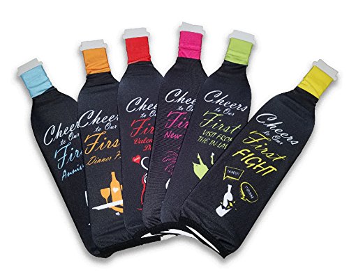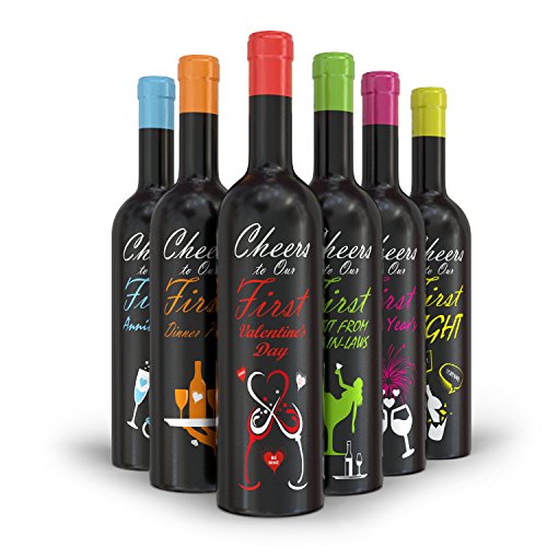 First Year of Marriage Milestones, Wine Bottle Covers for Wedding Gift (Pack of 6 Unique covers) ~ Wedding Firsts ~ Bridal & Engagement Party Gift ~ Personalize Individual Bottles of Wine ~ HouseVines