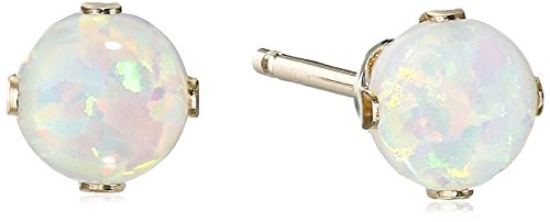 14K White Gold Created Alexandrite Round Stud Earrings