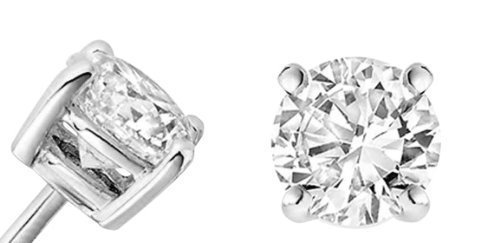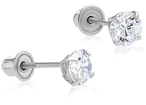 A classic pair of 14k gold stud earrings. Basket setting style stud earrings offer sophistication and versatility all in one beautiful package. These classic screw-back studs showcase round-cut white Cubic Zirconia held securely in four-prong settings. The safety screw-backs prevents sharp poking of the post in the back of the ear and offers security to prevent loss of earrings.Feature