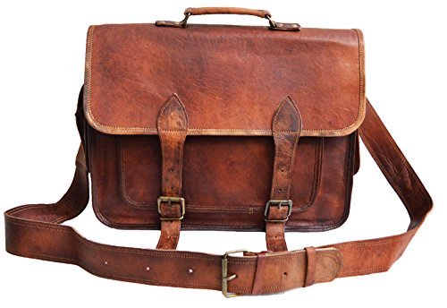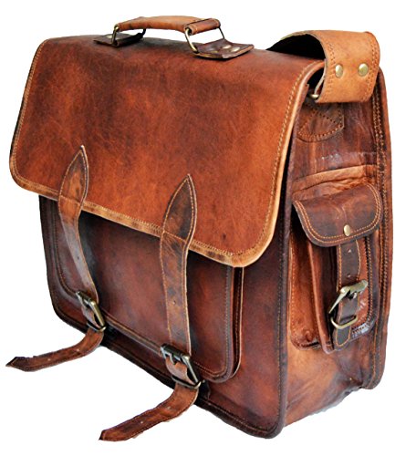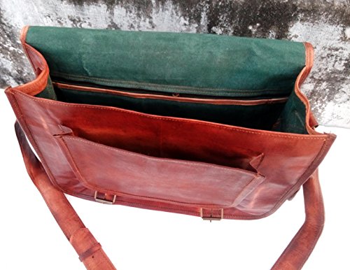 Made of 100% pure genuine leather. Handmade , top grain leather. Features 100% light weight goat leather bag. Ideal for netbooks , large laptops & tablets / Ipads No nasty chemicals used for tanning, won't cause any allergic disease if in contact with skin. has brass polished buckles , 100% rustproof. Adjustable shoulder strap , for best fitting for people of all sizes. One external front pocket for keeping misc. things Has a sturdy canvas inner lining for real long life. Handle on top for it can be used as a briefcase. Has the partition inside for easy separation of things. Dimensions: length X breadth X depth 12 in. X 16 in X 5 in 23 inch (approx) shoulder drop front outer pocket : 6.5 inch long X 5.5 inch wide shoulder strap width : 1.5 inches Shipping : Item will be dispatched immediately after clear payment. However, due to daylight difference it may take upto 36 ours to dispatch the item (Please exclude weekends). The bag will be shipped in a non retail packing. 100% Brand new.Feature