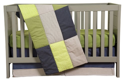 -. Feature : 3 Piece Crib Bedding Set Includes: Quilt, Fitted Crib Sheet, Crib Skirt / Quilt: 35" x 45"; Crib Sheet: fits a standard 52" x 28" crib mattress and features 8" deep pockets; Skirt: 15" drop / Machine Wash / Quilt/sheet: 100% cotton; skirt: 100% cotton; white decking / Coordinating Perfectly Preppy crib bumpers and room accessories are sold separately