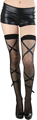 -. Title : ToBeInStyle Women's Ribbon Leg Wrap Fishnet Thigh Hi - Special Deal