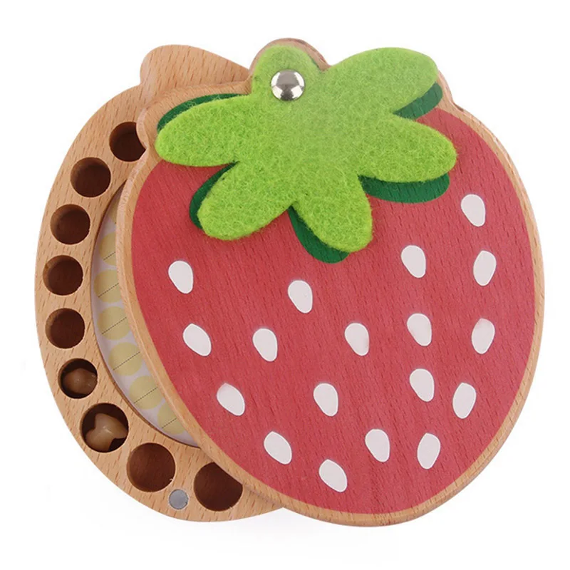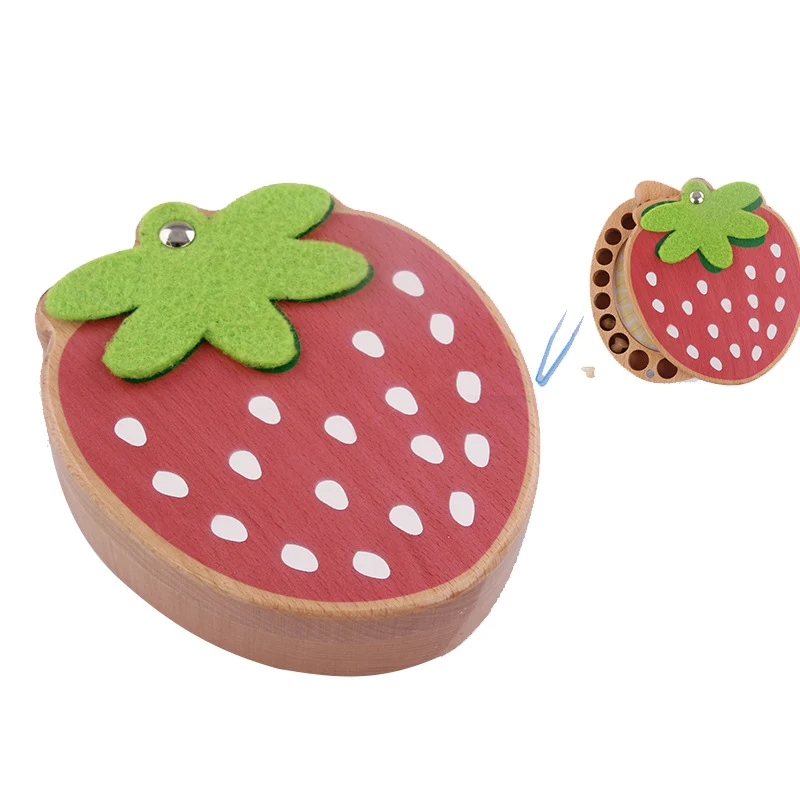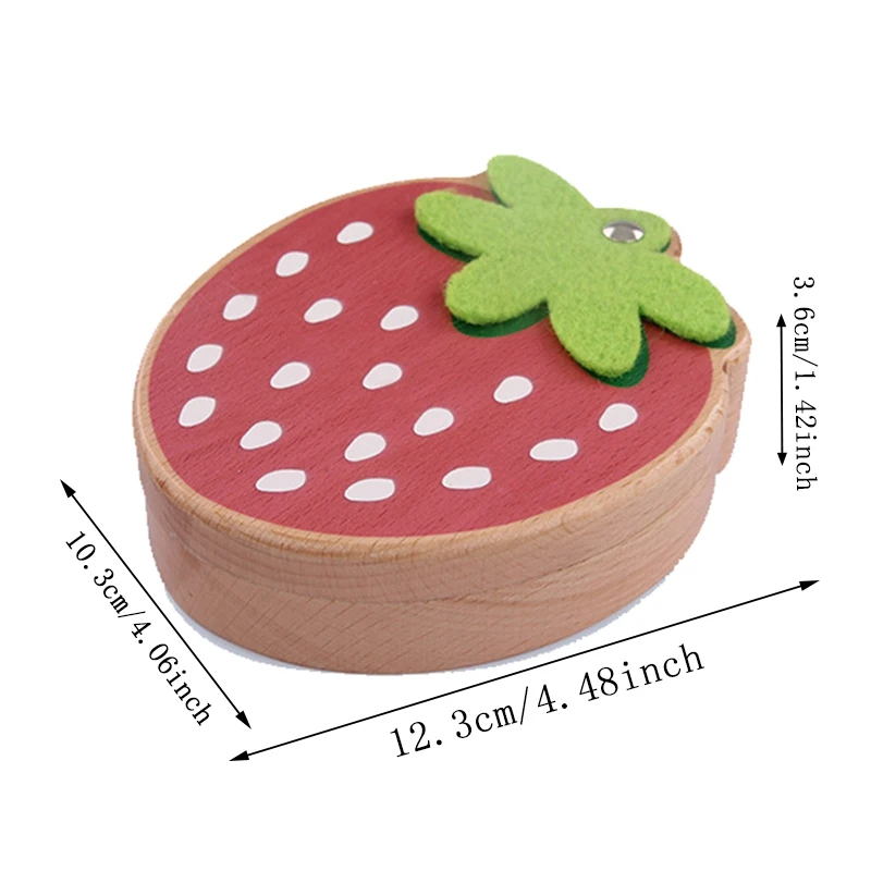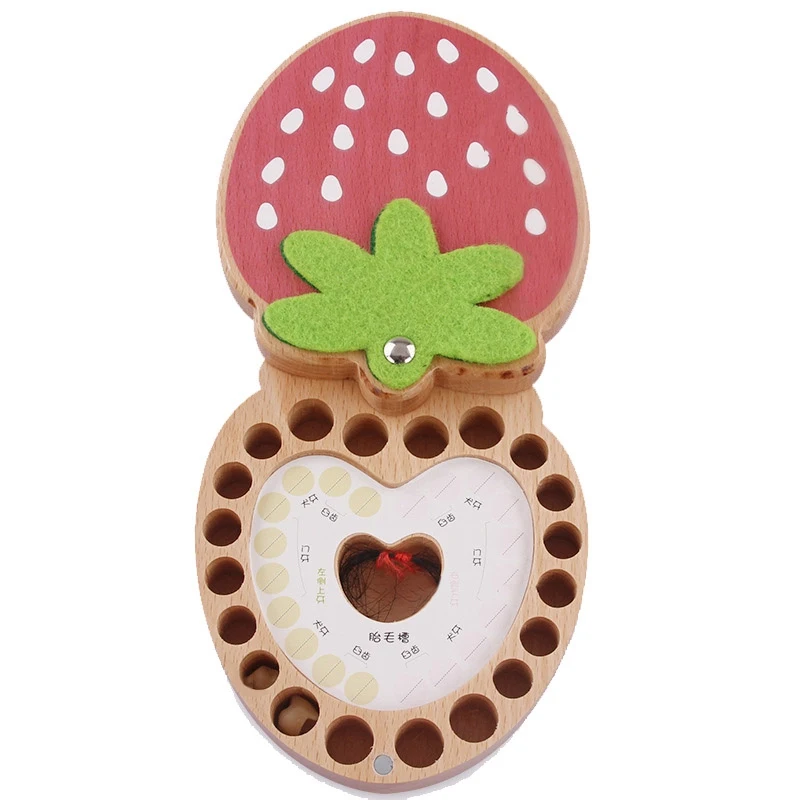 Features: 1.High quality・ wear-resisting and durable・ strawberry shape design . 2.Good for collecting of baby teeth・ have a nice commemoration effect. 3.With a groove・ can put lanugo into it・ chinese decals can be removed. 4.Smooth profile・ no deformation・ not hurt your skin.